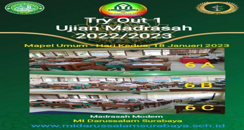 Try Out akan dilaksanakan 3 kali yaitu pada bulan Januari, Februari dan Maert. Try Out terselenggara atas kerjasama KKG MI Kelas 6 Kecamatan Eks Wonocolo Kota surabaya.